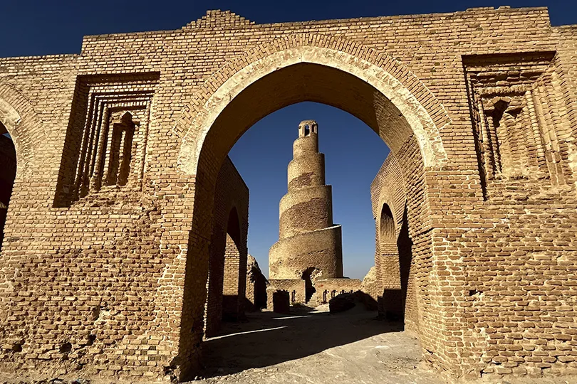 Seguiremos una ruta de autor que recalará en sitios arqueológicos clave de la Antigua Mesopotamia, como las ruinas de Babilonia y Ur de Caldea, explorando de camino los bazares y palacios abasíes de Bagdad, el esplendor medieval de Samarra con su minarete en espiral y los santuarios chiitas de Karbala.