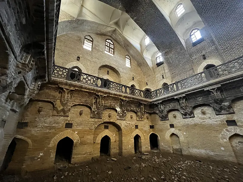 Cruzando numerosos checkpoints, pondremos rumbo a Kufa, antigua capital del califato islámico, rica en sitios religiosos e históricos. Posteriormente, tras visitar el santuario del Imán Alí en Nayaf, continuaremos hacia la Fortaleza de Al-Ukhaidir, una imponente construcción islámica del siglo VIII, y a la necrópolis de Wadi al-Salam, el cementerio más grande del mundo, con unas seis millones de tumbas.